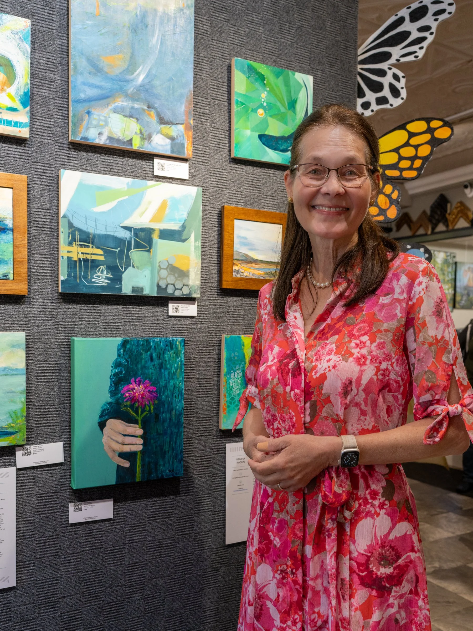 On Thursday, July 11, 2024, from 6:30 to 8:30 pm, we have a special treat for you. You will have the exclusive opportunity to meet with the artist, Regina Kaden, and other art enthusiasts. This is a unique chance to feel the spirit, energy, and joy of Regina Kaden as she shares her artistic journey and impressions with you.