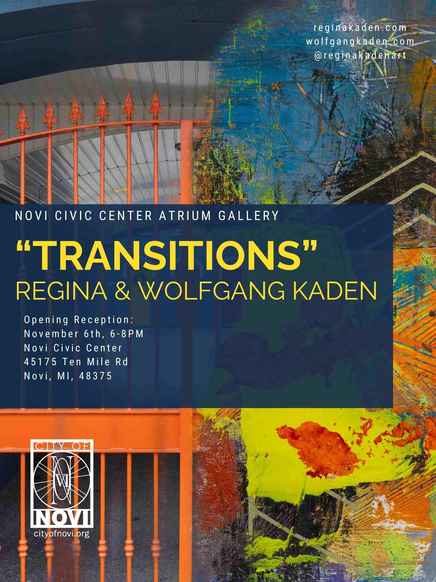 You're invited to a one-of-a-kind reception celebrating the first mutual art exhibition of Regina and Wolfgang Kaden at Novi Civic Center Atrium.
